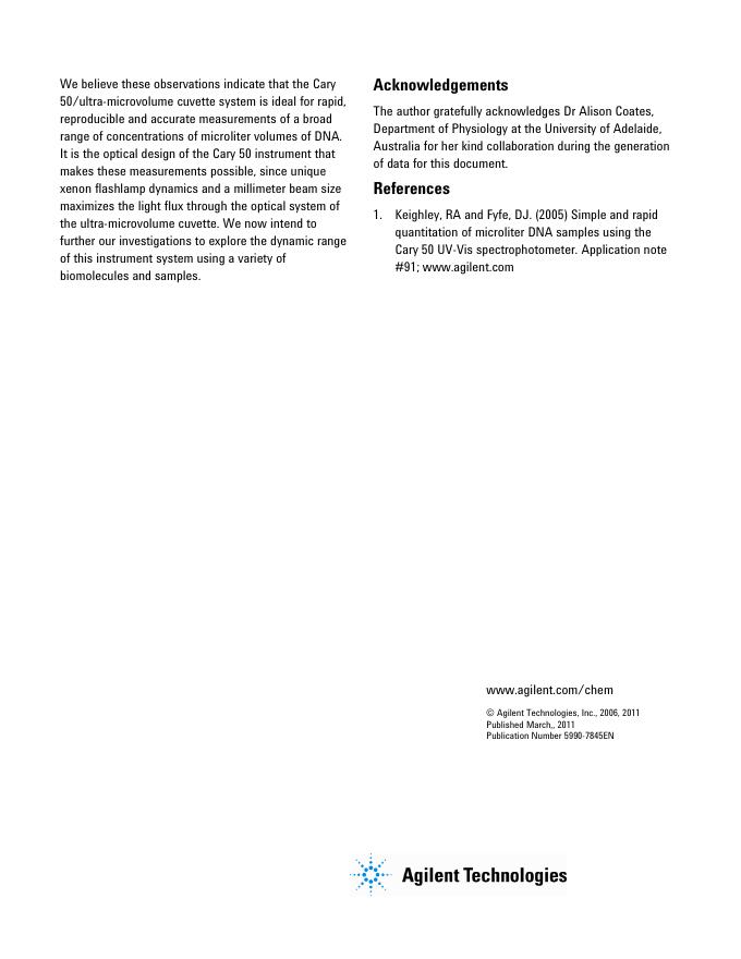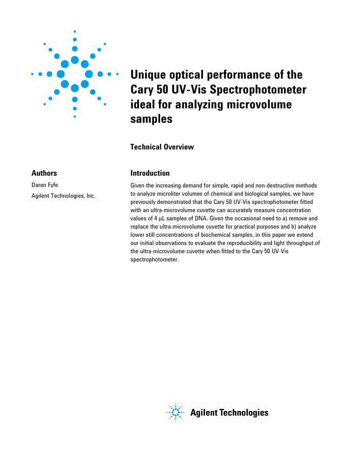 Unique optical performance of the Cary 50 UV-Vis Spectrophotometer ideal for analyzing microvolume samples 数据手册.pdf