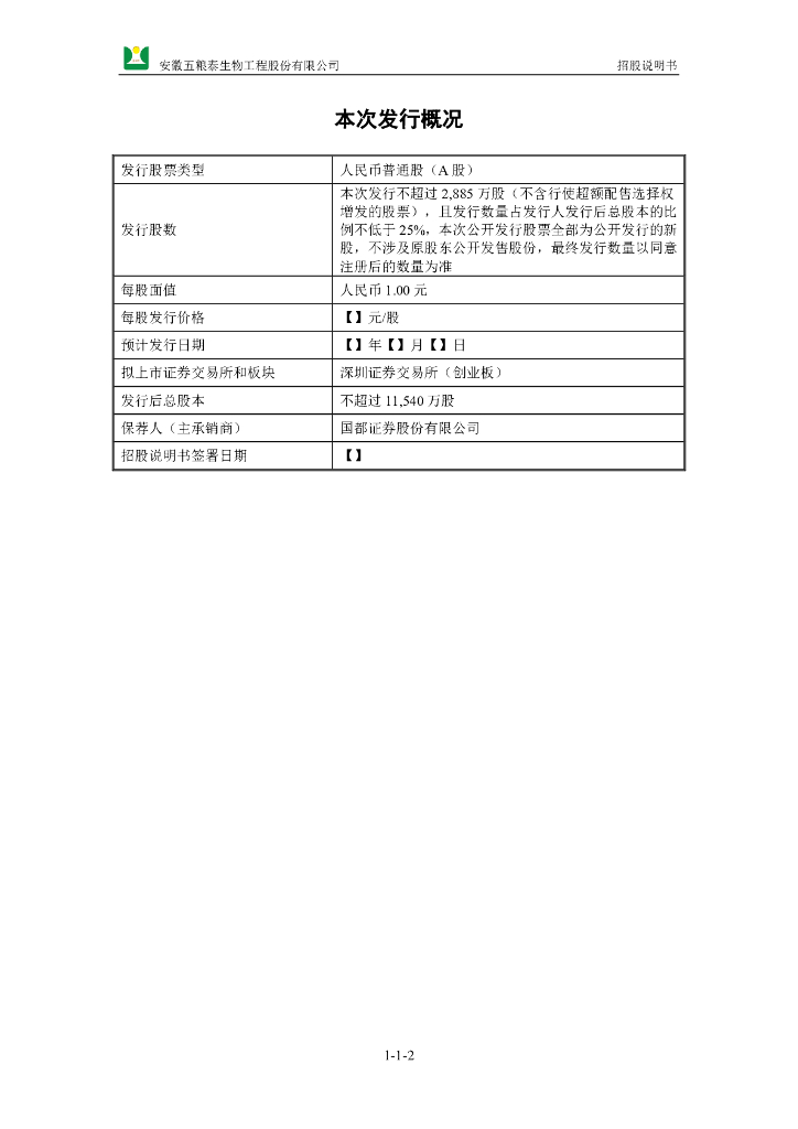 安徽五粮泰生物工程股份有限公司深交所创业板IPO上市招股说明书.pdf