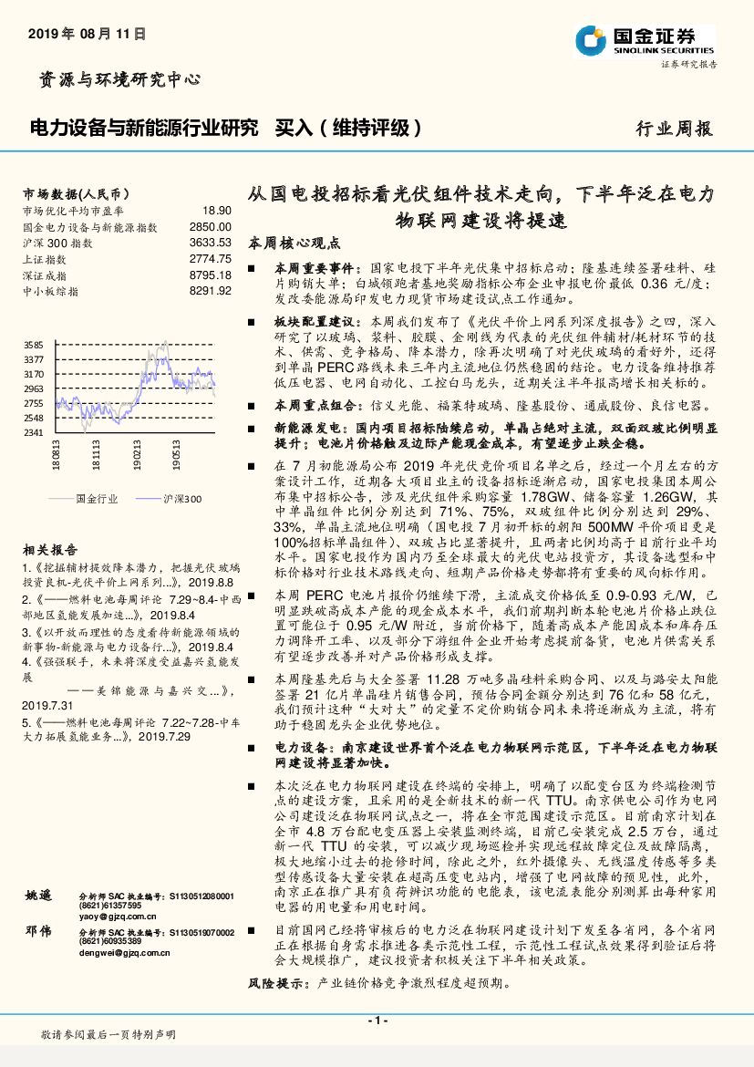 国金证券:电力设备与新能源行业研究:从国电投招标看光伏组件技术走向,下半年泛在电力物联网建设将提速.pdf