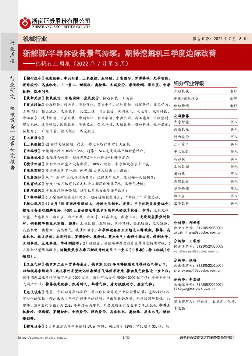 浙商证券:机械行业周报(2022年7月第3周):新能源/半导体设备景气持续;期待挖掘机三季度边际改善.pdf