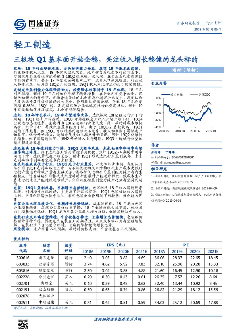 国盛证券:轻工制造:三板块Q1基本面开始企稳,关注收入增长稳健的龙头标的.pdf
