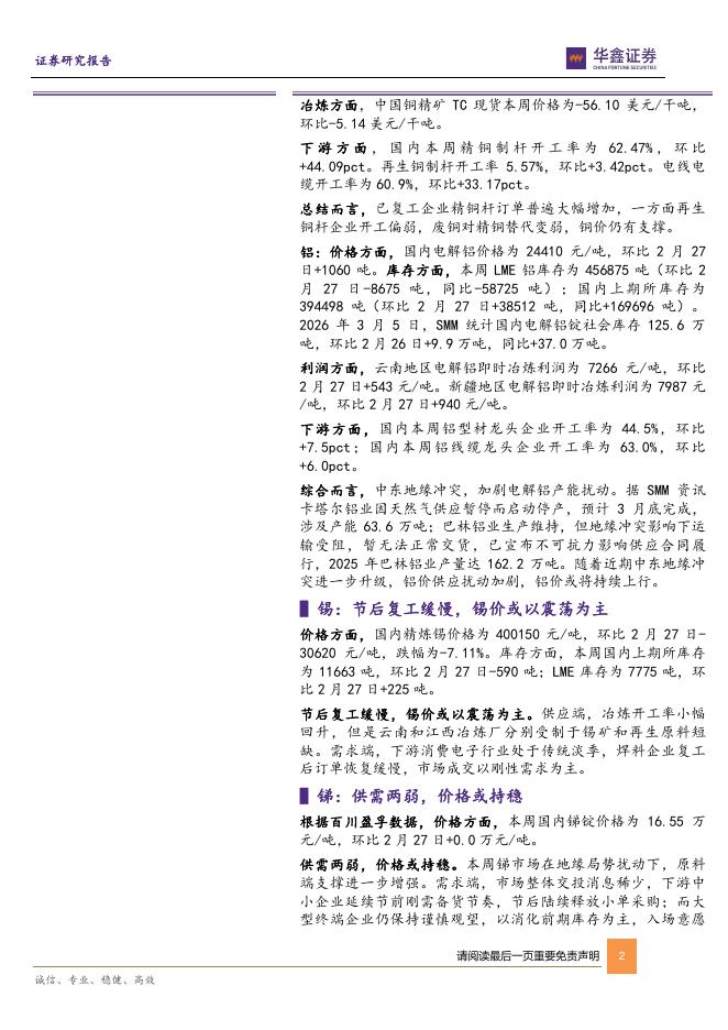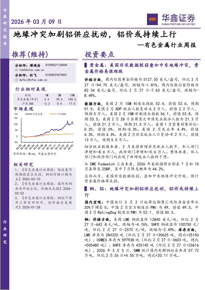 华鑫证券:有色金属行业周报:地缘冲突加剧铝供应扰动,铝价或持续上行.pdf