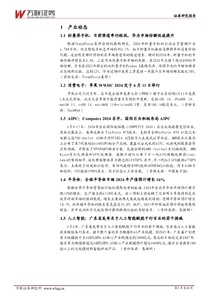 万联证券:电子行业周观点:国际巨头积极布局AIPC,关注本周苹果WWDC2024.pdf