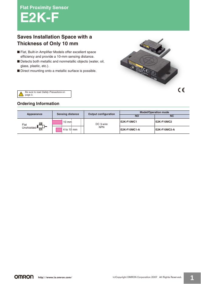 OMRON INDUSTRIAL AUTOMATION Flat Proximity Sensor E2K-F Saves Installation Space with a Thickness of Only 10 mm 数据手册.pdf