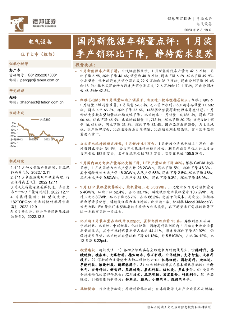 德邦证券:国内新能源车销量点评:1月淡季产销环比下降,静待需求复苏.pdf