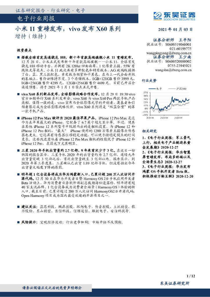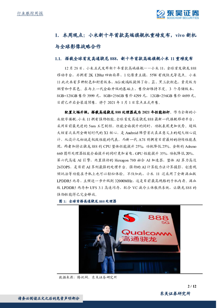 东吴证券:电子行业周报:小米11重磅发布,vivo发布X60系列.pdf