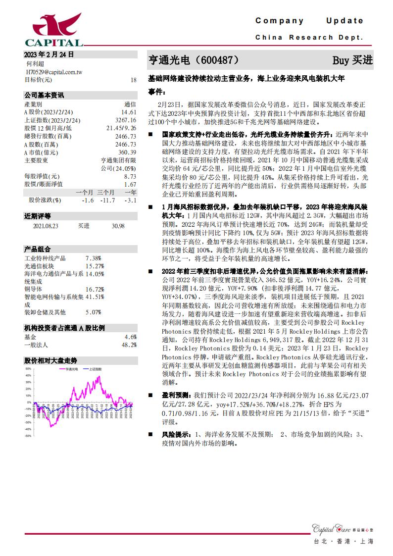 群益证券:亨通光电(600487)-基础网络建设持续拉动主营业务,海上业务迎来风电装机大年.pdf