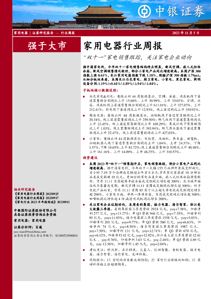中银证券:家用电器行业周报:“双十一”家电销售跟踪,关注家电企业动向.pdf