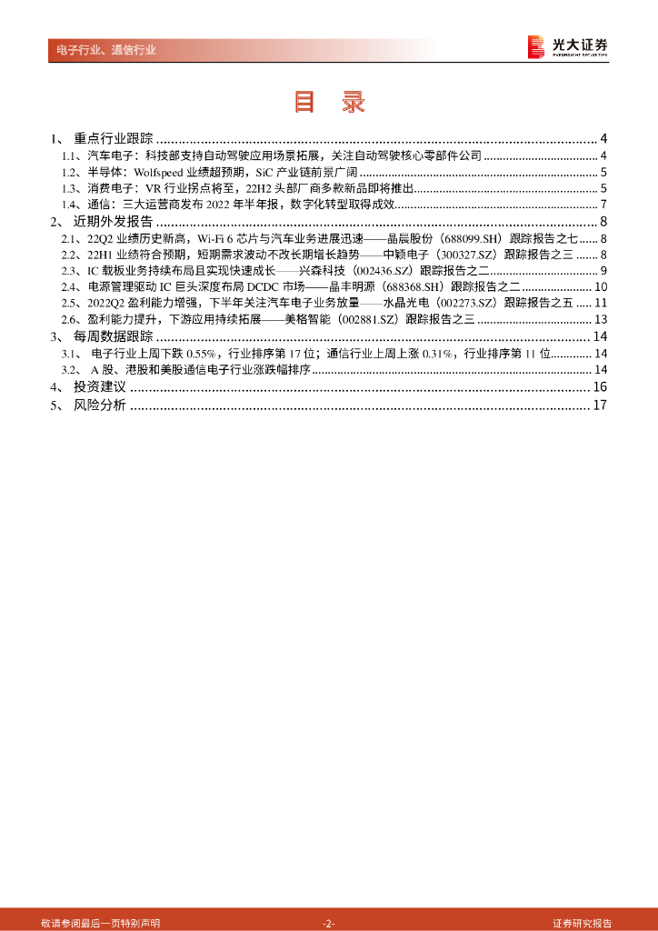 光大证券:通信电子行业周观点第35期:Wolfspeed业绩指引超预期,22Q4多款VR新品即将推出.pdf