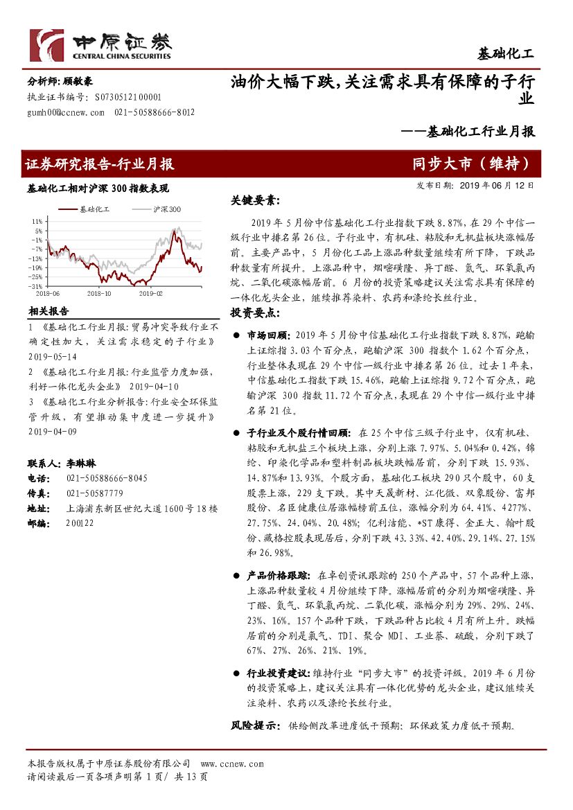 中原证券:基础化工行业月报:油价大幅下跌,关注需求具有保障的子行业.pdf