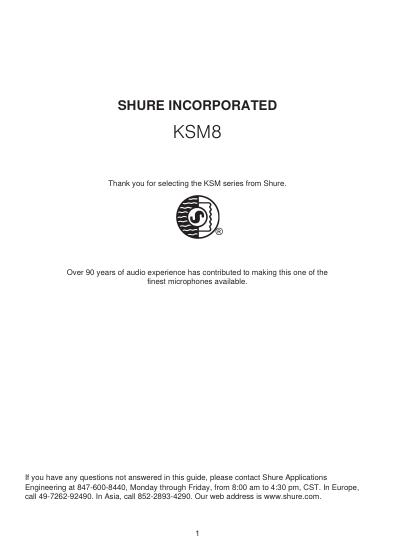舒尔 KSM8 Dualdyne™ 麦克风用户指南.pdf