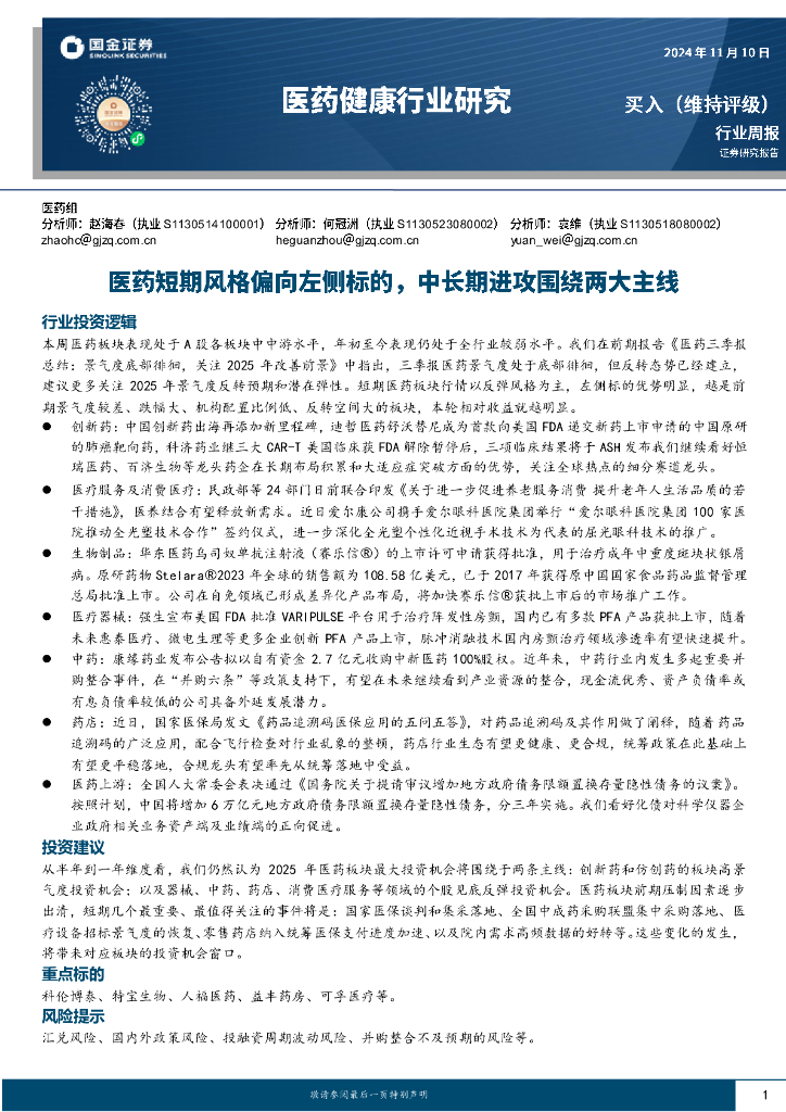 国金证券:医药健康行业研究:医药短期风格偏向左侧标的,中长期进攻围绕两大主线.pdf