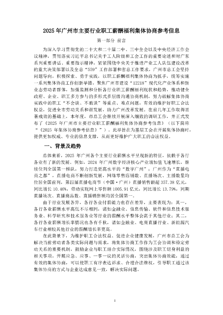 广州市人力资源服务协会:2025广州市主要行业职工薪酬福利集体协商参考信息报告.pdf