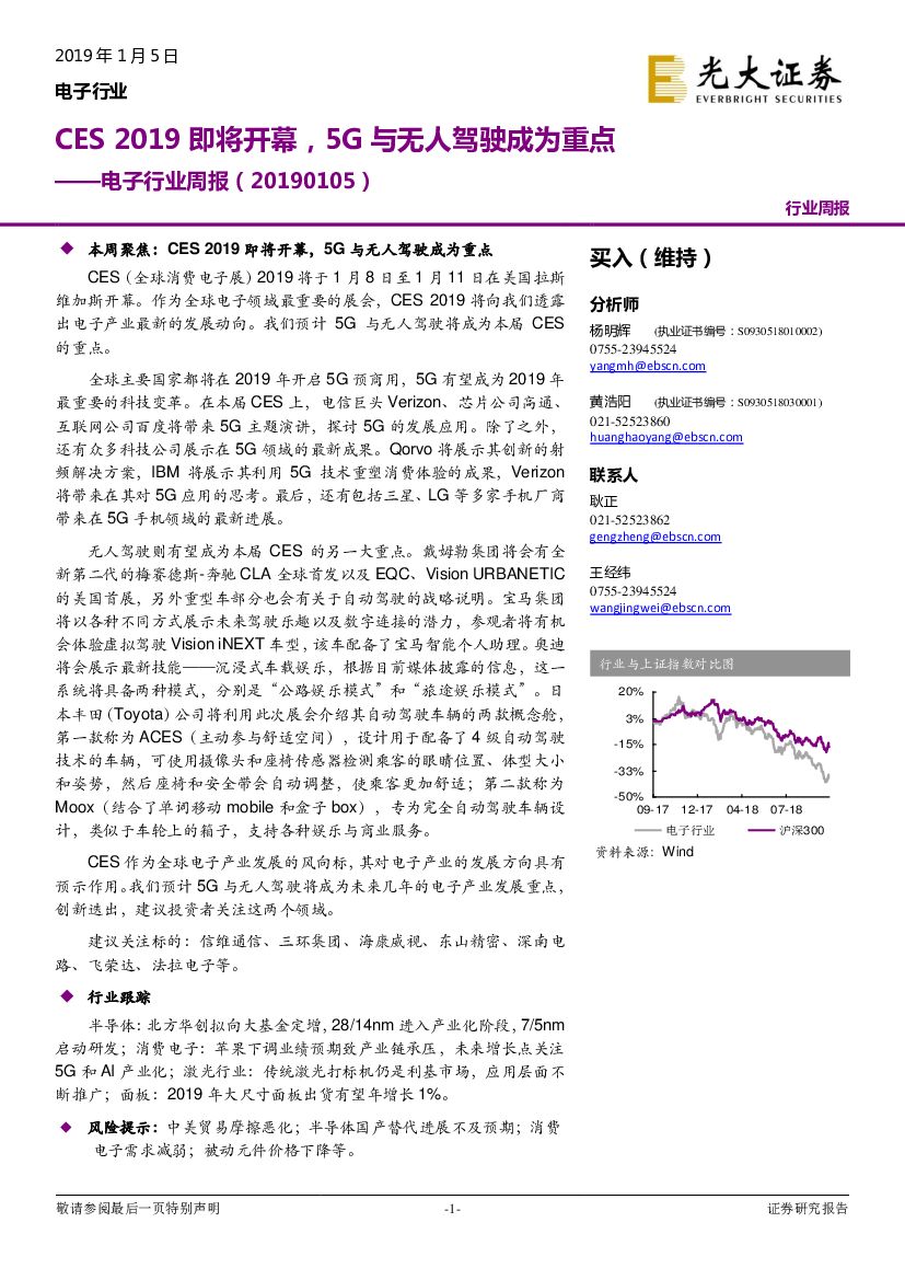光大证券:电子行业周报:CES 2019即将开幕,5G与无人驾驶成为重点.pdf