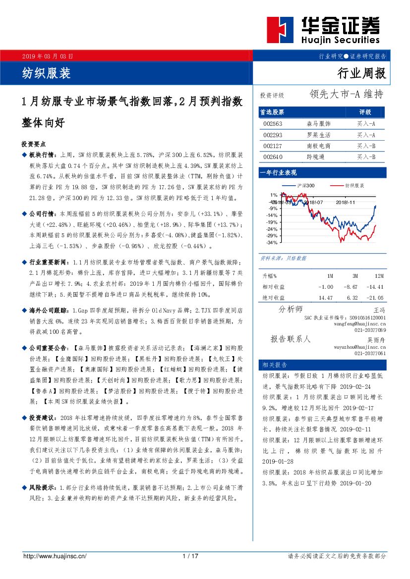 华金证券:纺织服装行业周报:1月纺服专业市场景气指数回落,2月预判指数整体向好.pdf