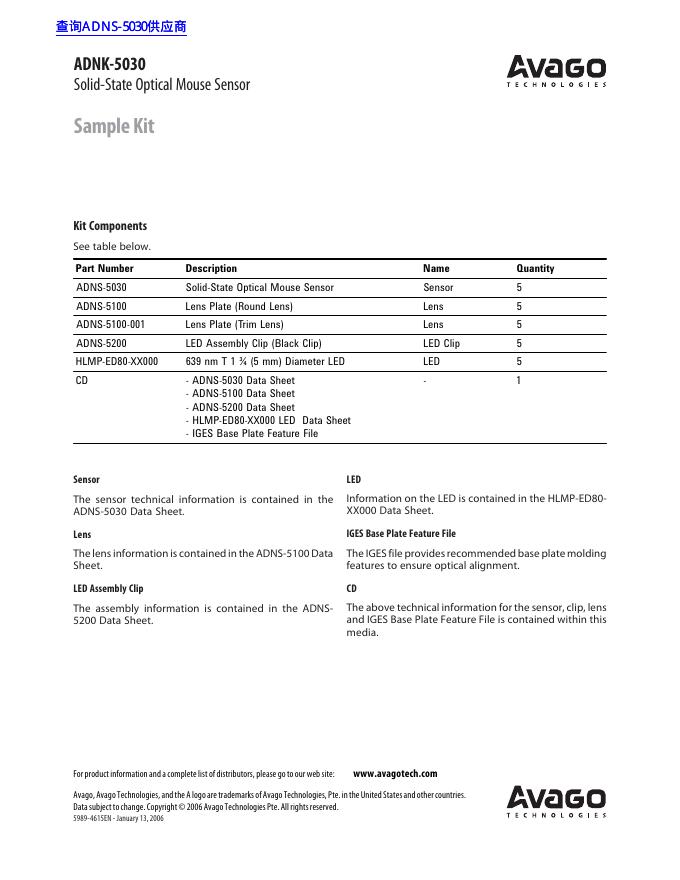 ADNK-5030 Solid-State Optical Mouse Sensor 数据手册.pdf