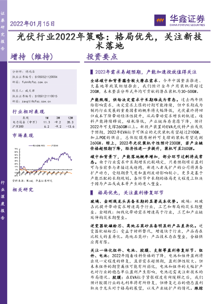 华鑫证券:光伏行业2022年策略:格局优先,关注新技术落地.pdf