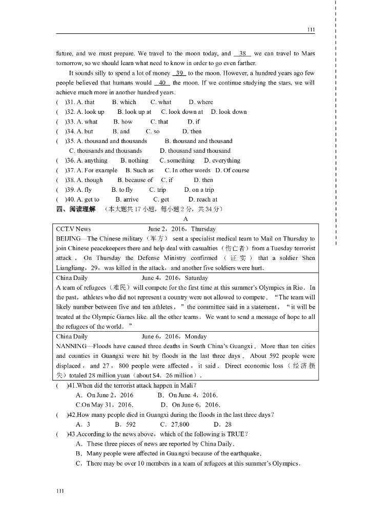 张家港市2020年初三英语线上教学评估指导(含答案)附答案.doc