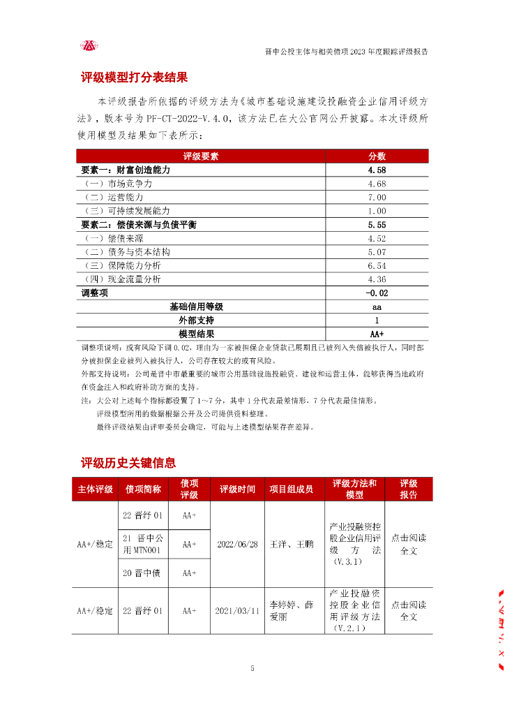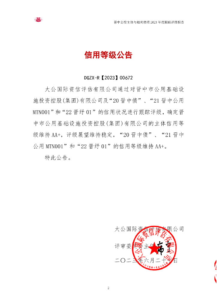 大公:晋中市公用基础设施投资控股(集团)有限公司主体与相关债项2023年度跟踪评级报告.pdf