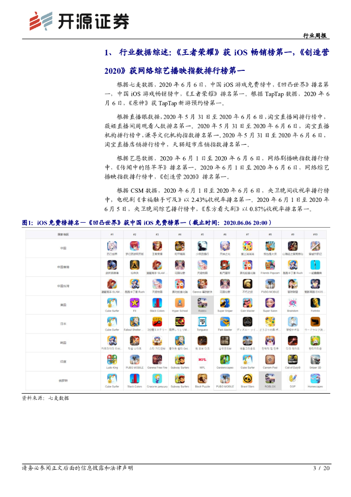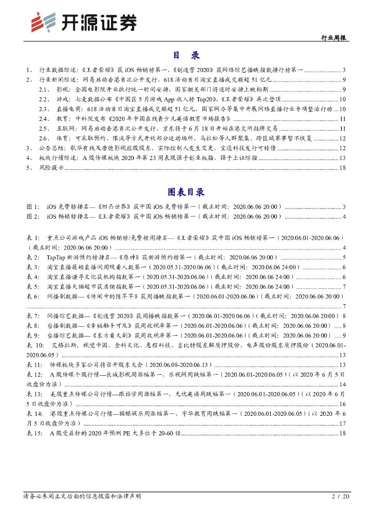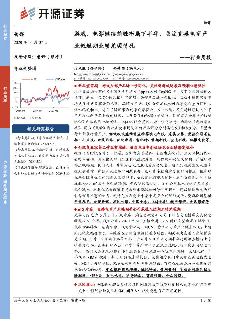 开源证券:传媒行业周报:游戏、电影继续前瞻布局下半年,关注直播电商产业链短期业绩兑现情况.pdf