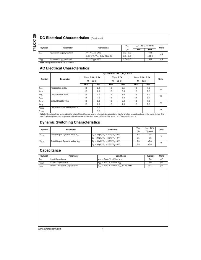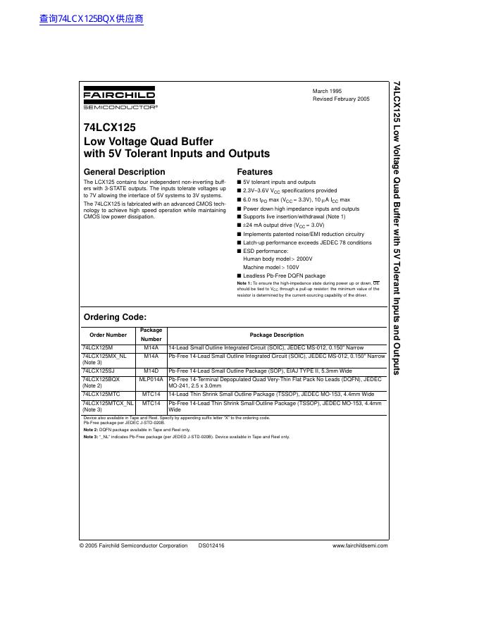 FAIRCHILD 74LCX125 Low Voltage Quad Buffer with 5V Tolerant Inputs and Outputs 数据手册.pdf