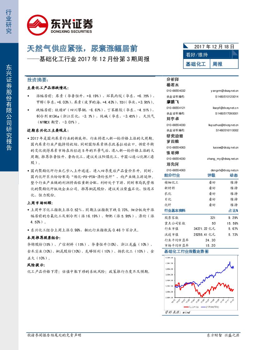 东兴证券:基础化工行业2017年12月份第3期周报:天然气供应紧张,尿素涨幅居前.pdf
