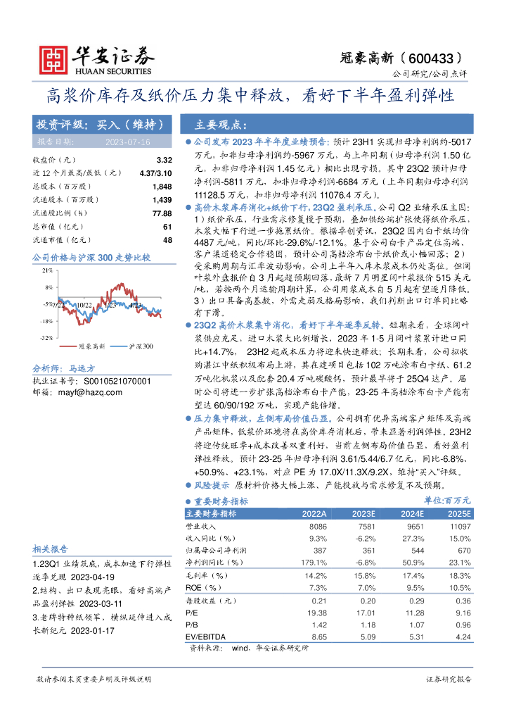 华安证券:冠豪高新(600433)-高浆价库存及纸价压力集中释放,看好下半年盈利弹性.pdf