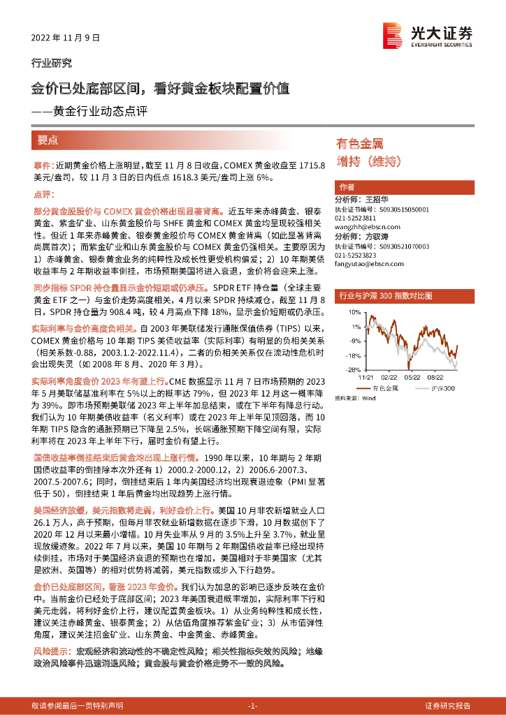 光大证券:黄金行业动态点评:金价已处底部区间,看好黄金板块配置价值.pdf
