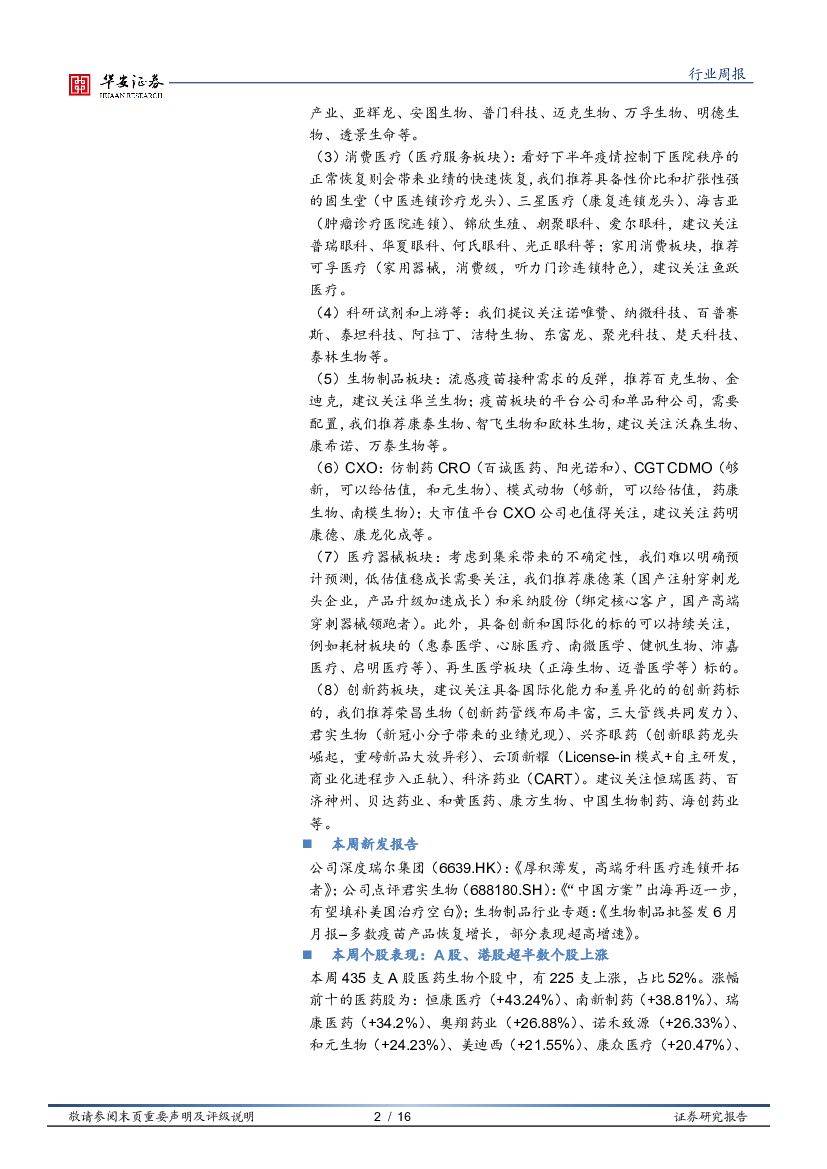 华安证券:医药生物行业周报:本周CXO和医疗设备引领行情,中报行情陆续开启.pdf
