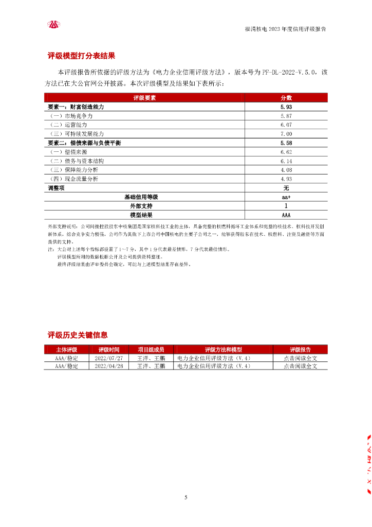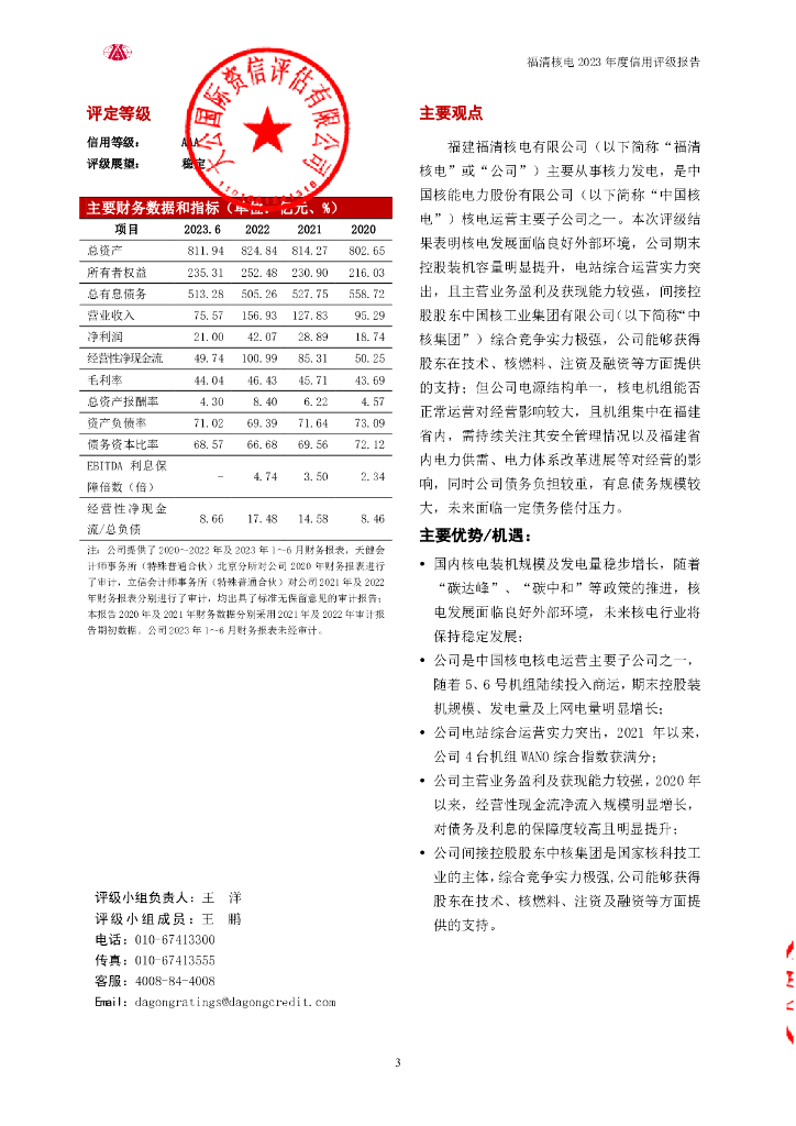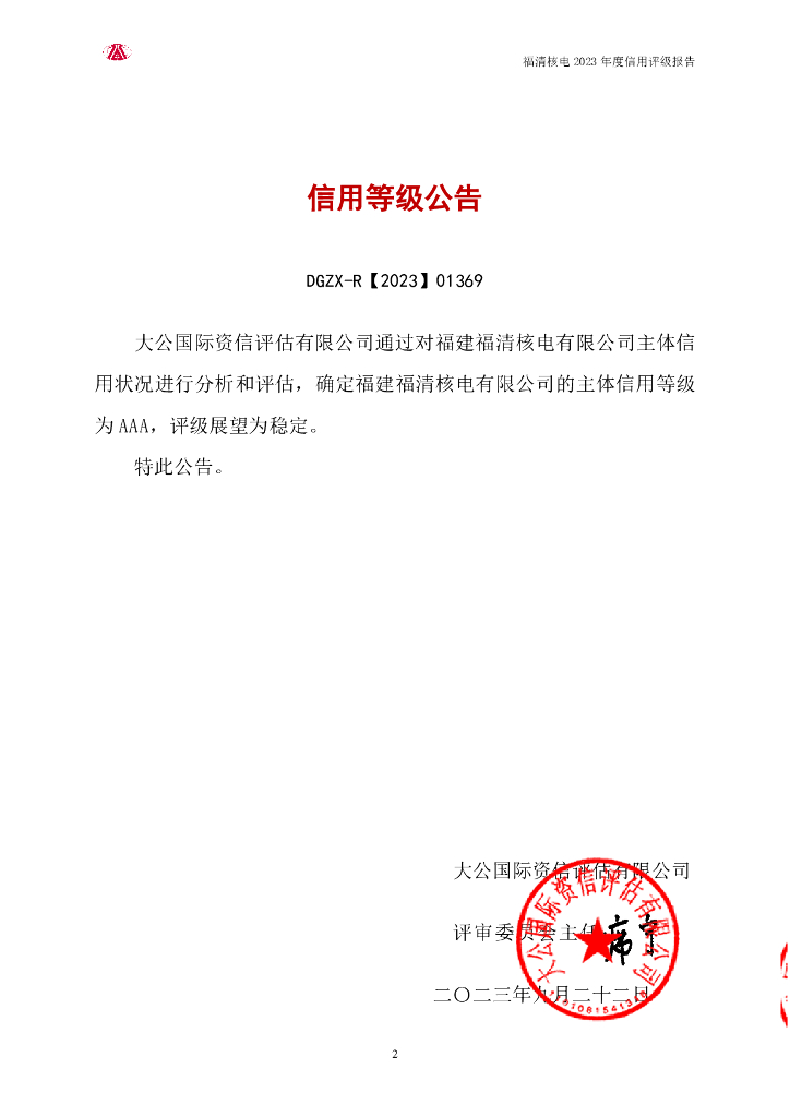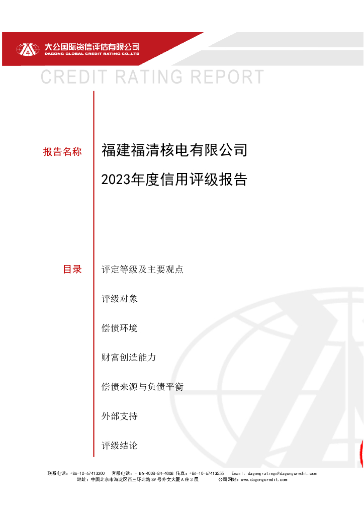 大公:福建福清核电有限公司2023年度信用评级报告.pdf