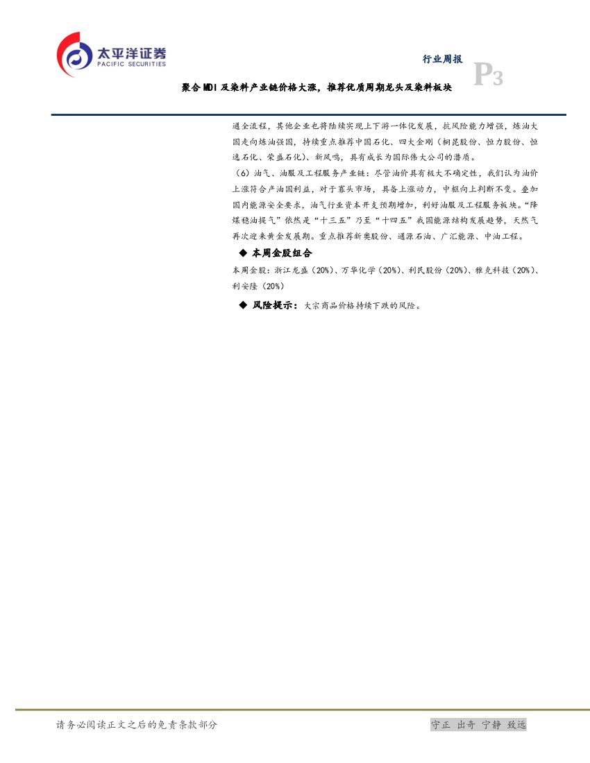 太平洋证券:化工行业周报:聚合MDI及染料产业链价格大涨,推荐优质周期龙头及染料板块.pdf