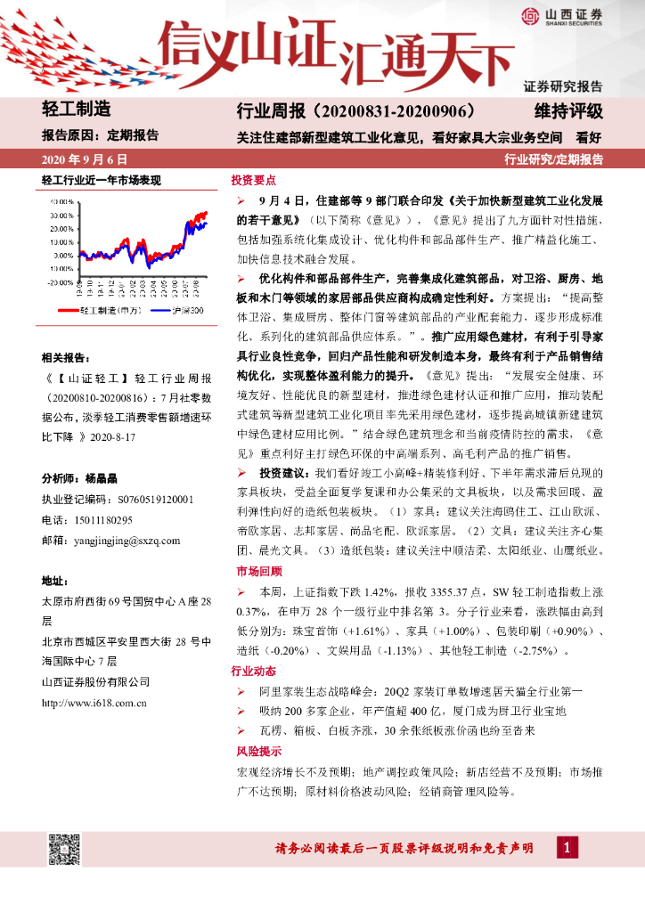 山西证券:轻工制造行业周报:关注住建部新型建筑工业化意见,看好家具大宗业务空间.pdf