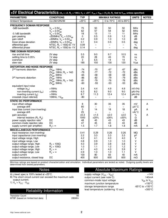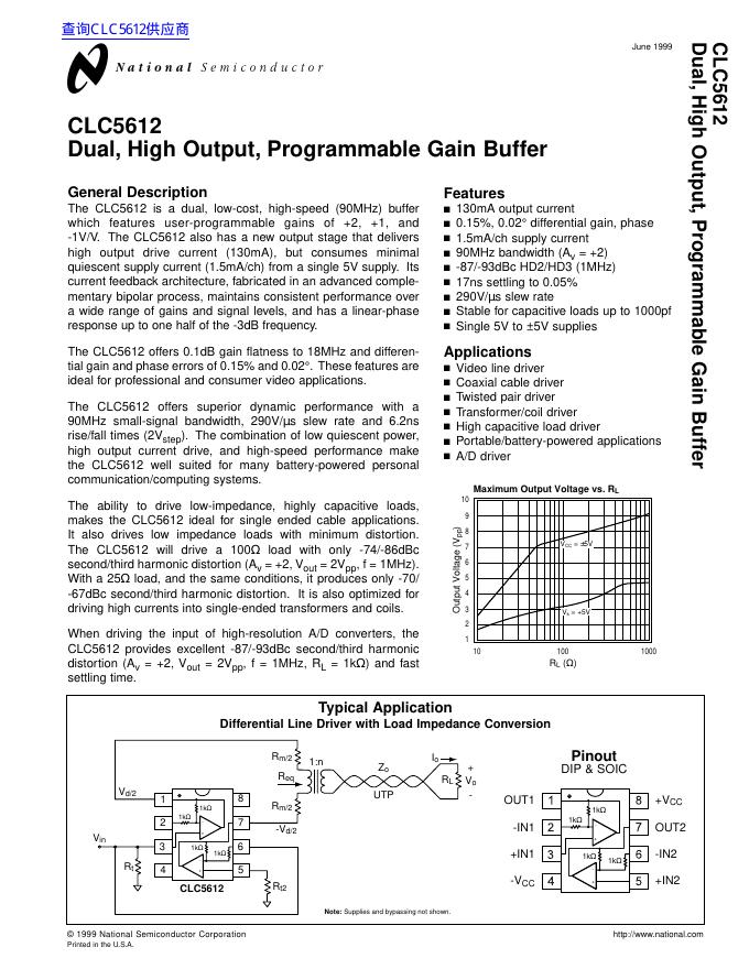 National Semiconductor CLC5612 Dual, High Output, Programmable Gain Buffer 数据手册.pdf