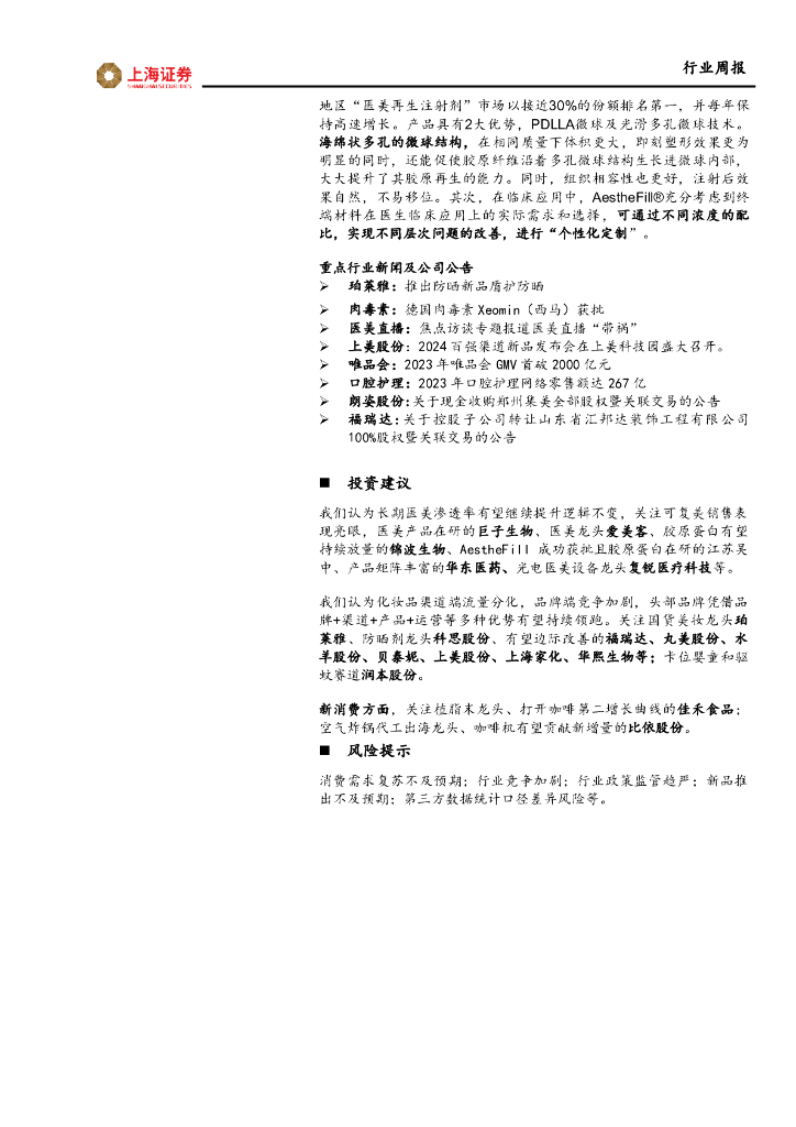 上海证券:美容护理行业周报:锦波重组胶原蛋白持续放量,关注医美新品上市进展.pdf