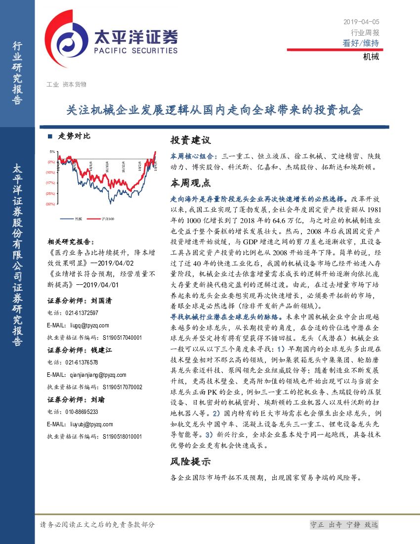 太平洋证券:机械行业周报:关注机械企业发展逻辑从国内走向全球带来的投资机会.pdf