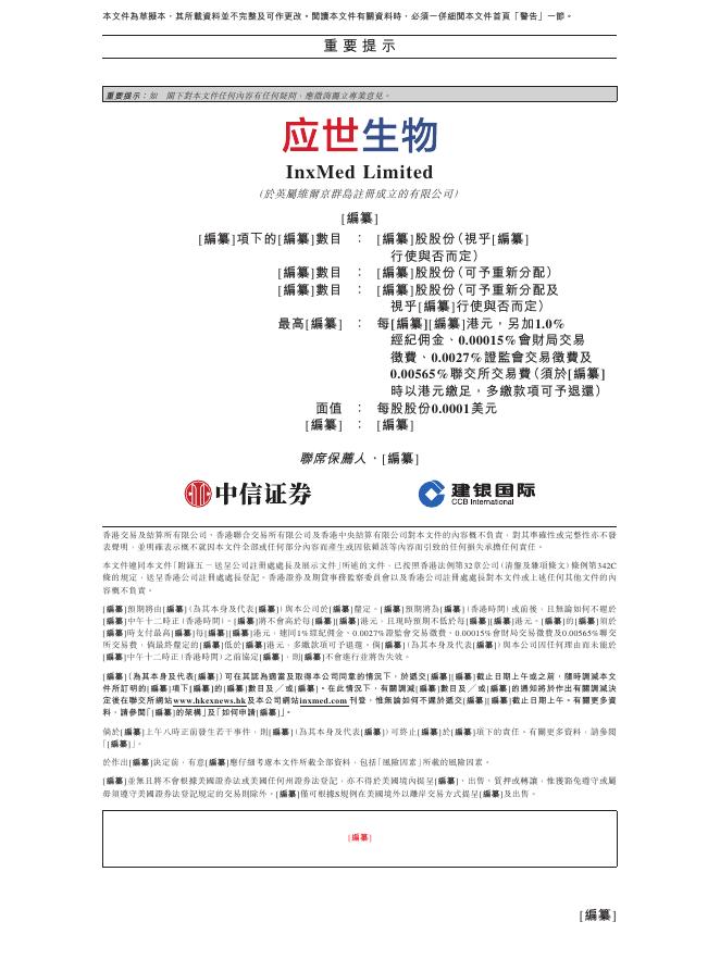 InxMed Limited应世生物港交所IPO上市招股说明书.pdf