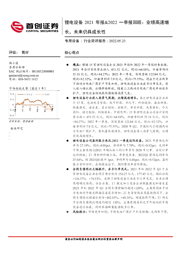 首创证券:锂电设备2021年报&2022一季报回顾:业绩高速增长,未来仍具成长性.pdf