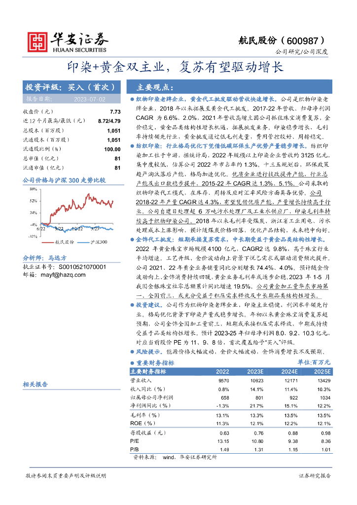 华安证券:航民股份(600987)-印染+黄金双主业,复苏有望驱动增长.pdf