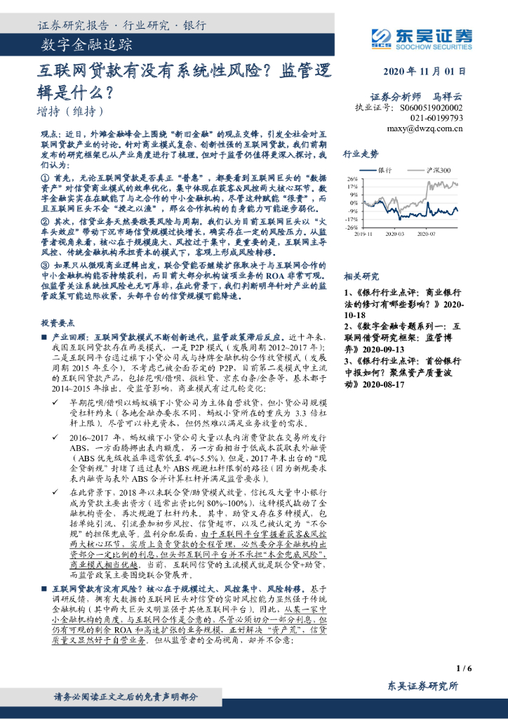 东吴证券:银行-数字金融追踪:互联网贷款有没有系统性风险? 监管逻辑是什么?.pdf