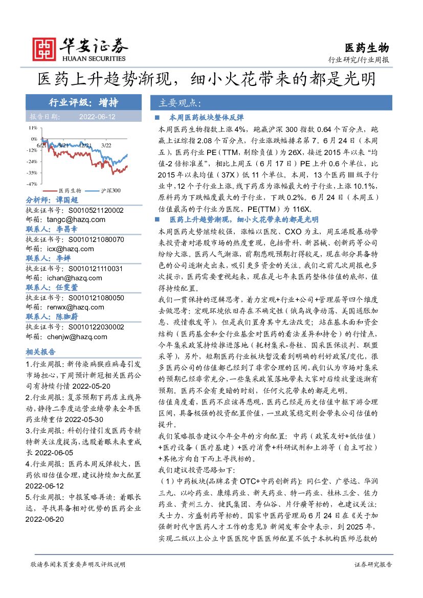 华安证券:医药生物行业周报:医药上升趋势渐现,细小火花带来的都是光明.pdf