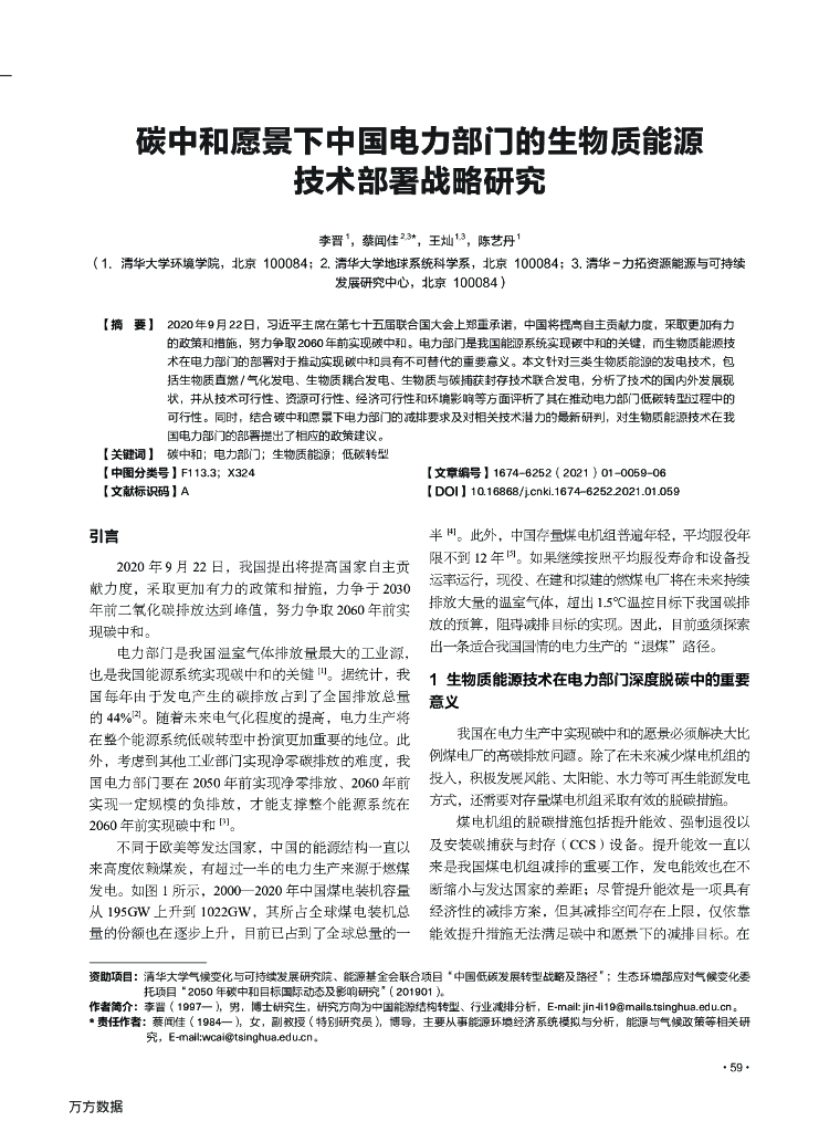 碳中和愿景下中国电力部门的生物质能源技术部署战略研究.pdf