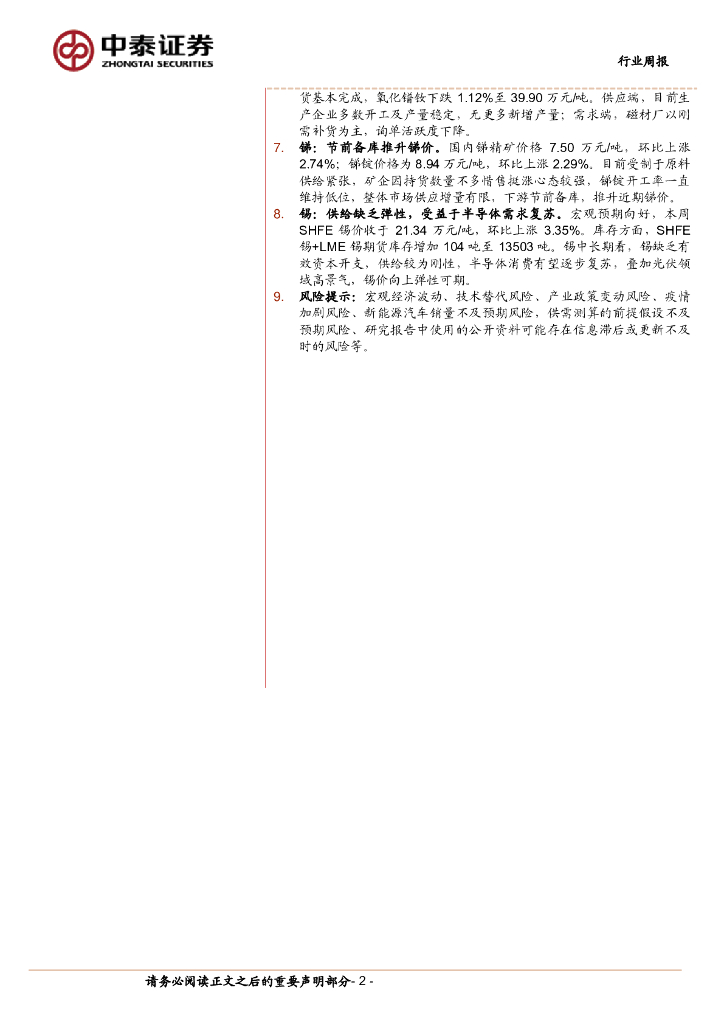 中泰证券:有色金属行业周报:供需双弱,节前锂价窄幅震荡.pdf