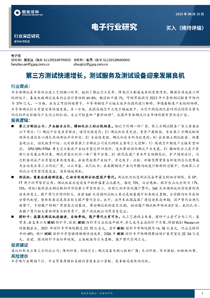 国金证券:电子行业深度研究:第三方测试快速增长,测试服务及测试设备迎来发展良机.pdf