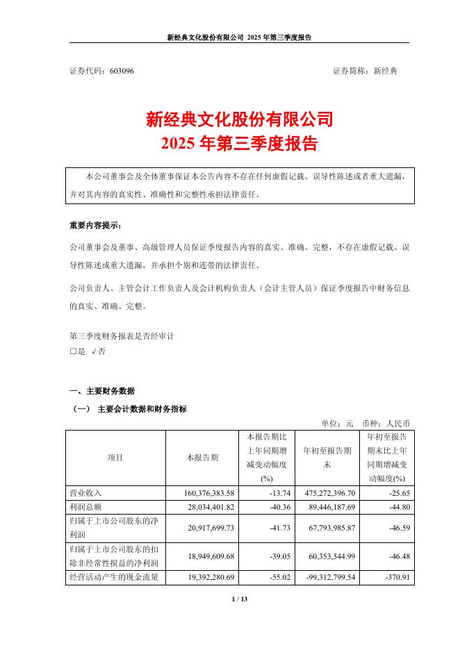 603096-新经典:新经典2025年第三季度报告.pdf