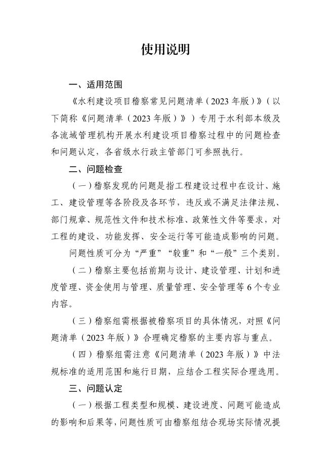 水利部监督司:水利建设项目稽察常见问题清单(2023年版).pdf