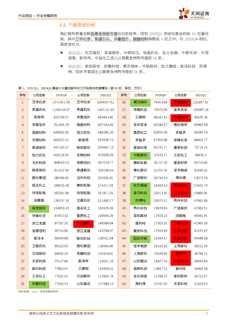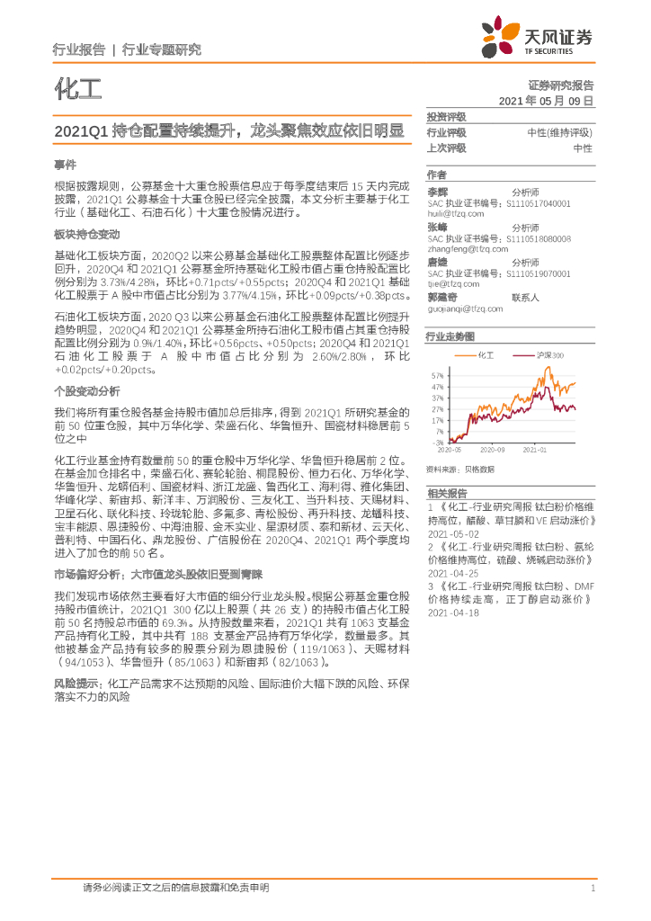 天风证券:化工行业专题研究:2021Q1持仓配置持续提升,龙头聚焦效应依旧明显.pdf