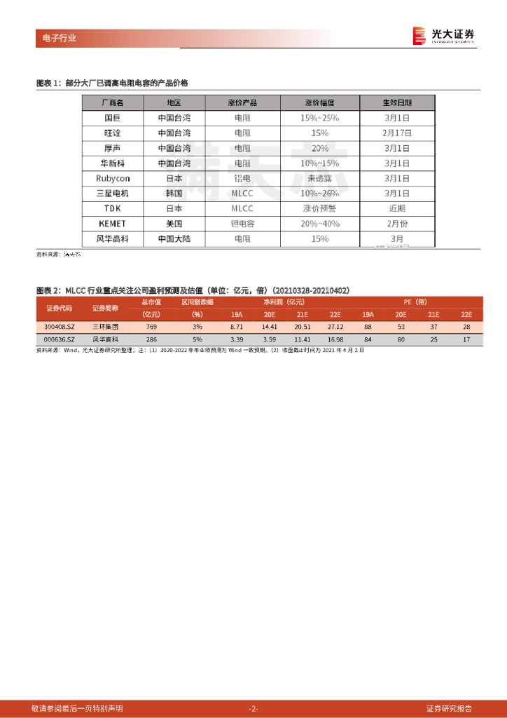 光大证券:电子行业:MLCC行业跟踪报告之二:供需失衡驱动价格持续上涨,核心关注三环集团和风华高科.pdf