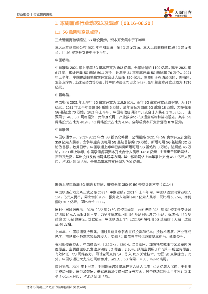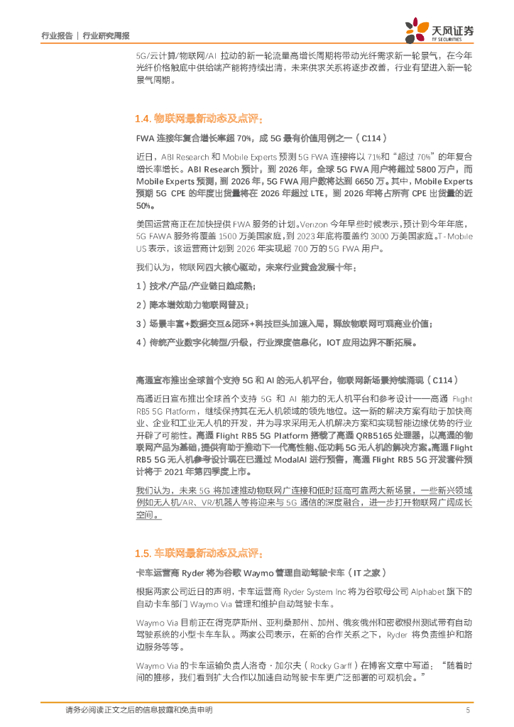 天风证券:通信行业研究周报:三大运营商持续推进5G建设,FWA快速增长突显5G价值.pdf