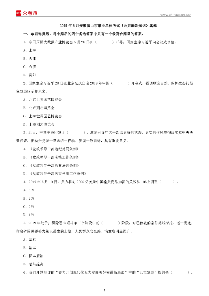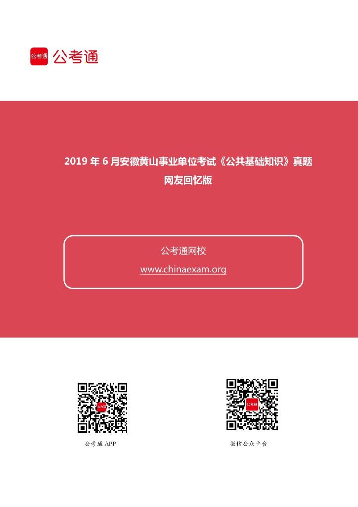 2019年6月安徽黄山事业单位考试《公共基础知识》真题.pdf
