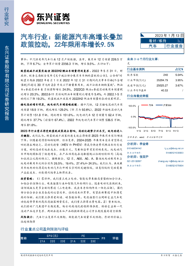 东兴证券:汽车行业:新能源汽车高增长叠加政策拉动,22年乘用车增长9.5%.pdf